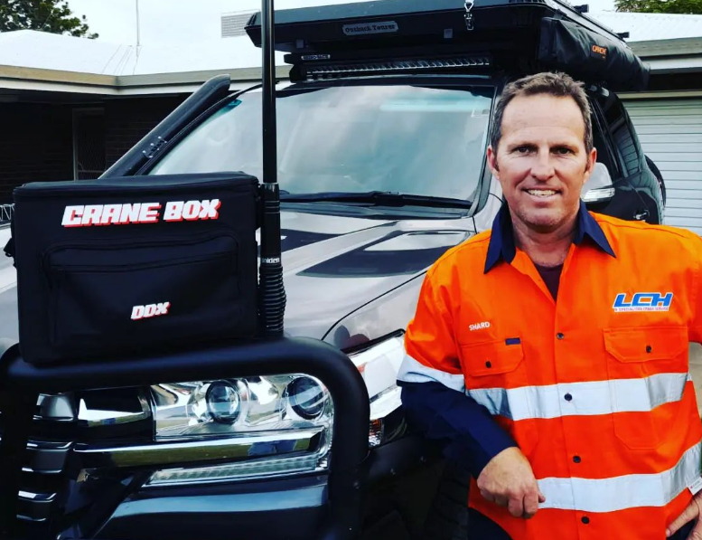 With its cooler compartment, you can keep your lunch and drinks cold all day long. The A4 docket book/iPad pocket is perfect for keeping your important documents and devices close at hand. The huge front double pocket is great for tickets, locks, keys, wallet, chargers, and more, while the huge stretchy mesh side pocket is perfect for gloves or vitamins. The huge material side pocket is great for taking crane radios, and the hard removable inside plastic bottom makes cleaning a breeze. The inside frame keeps food from squishing together, and the collapsible frame allows the CRANE BOX to fold flat into a suitcase for overnight jobs. The D-ring is for hard hat attachment and the adjustable strap can be used for over-the-shoulder or pick and carry. It can also fit in the back of a Franna, making it a great armrest for a rigger. It can fit a liter drink bottle and can hold up to 12 mining food containers for hungry operators.